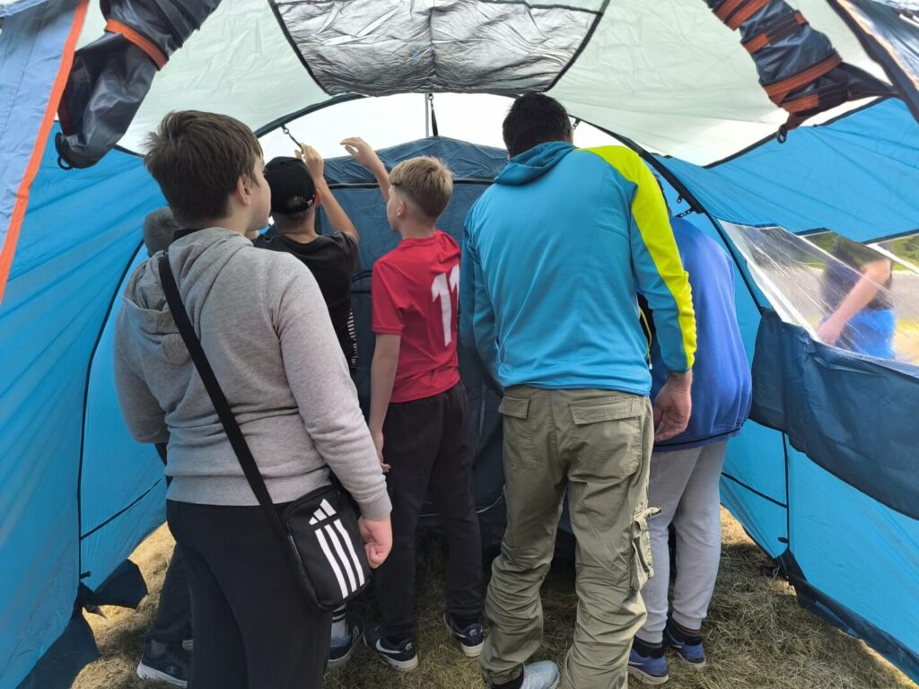 Okupili smo se ispred škole, malo se “prošvercali” utovarivši opremu i hranu u auto, pa se prošetali do Lovačkog doma Srndać gdje smo podigli šatore, a zatim prionuli pripremi kamperskog doručka.