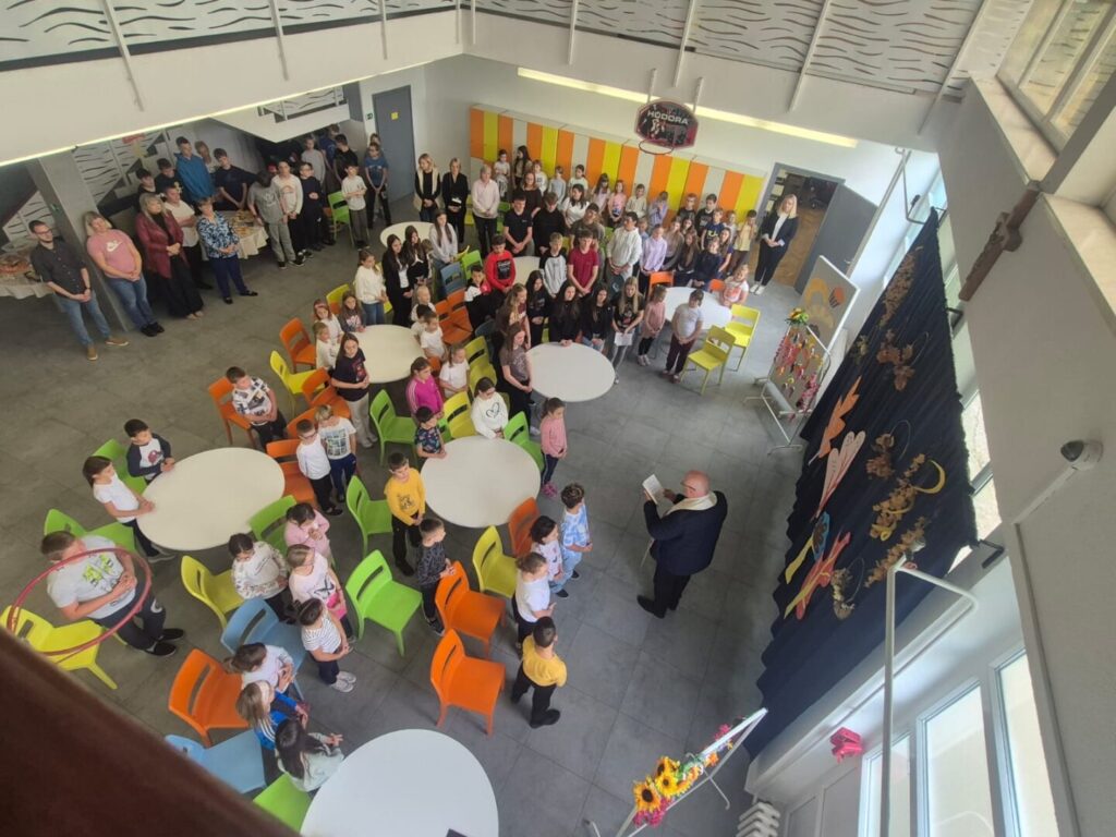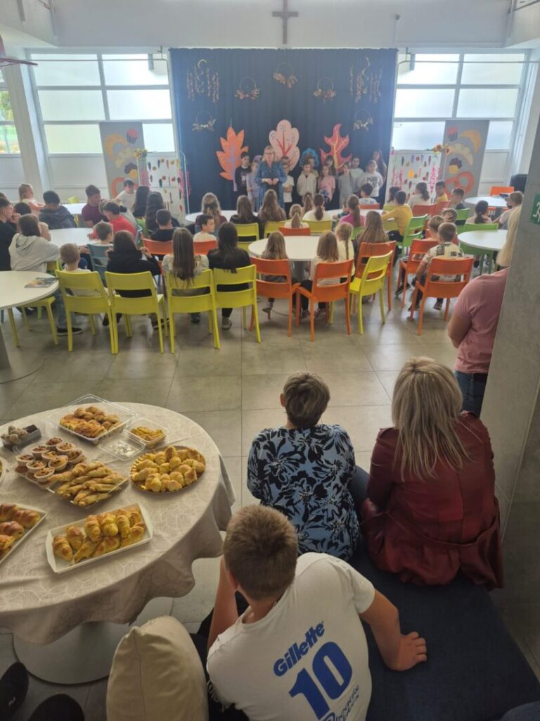 Posebnim ga je učinio dolazak svećenika Maksimilijana Milana Hercega koji je, nakog pozdrava ravnateljice Draženke Švelec-Juričić, blagoslovio sva peciva i kruh. Učenici šestoga razreda pripremili su kratak govor i hrabro ga izgovorili pred prisutnima. Nakon njih, četvrtašići su nas razveselili pjesmom Ovo je dan koju su otpjevali izvrsno, s veseljem i osmijehom. Zatim su nastupili oni najstariji, učenici osmog i sedmog razreda i dodatno uljepšali događaj. Vrijedno je naglasiti da je sve učenike za nastup pripremala vjeroučiteljica Sandra Završki.