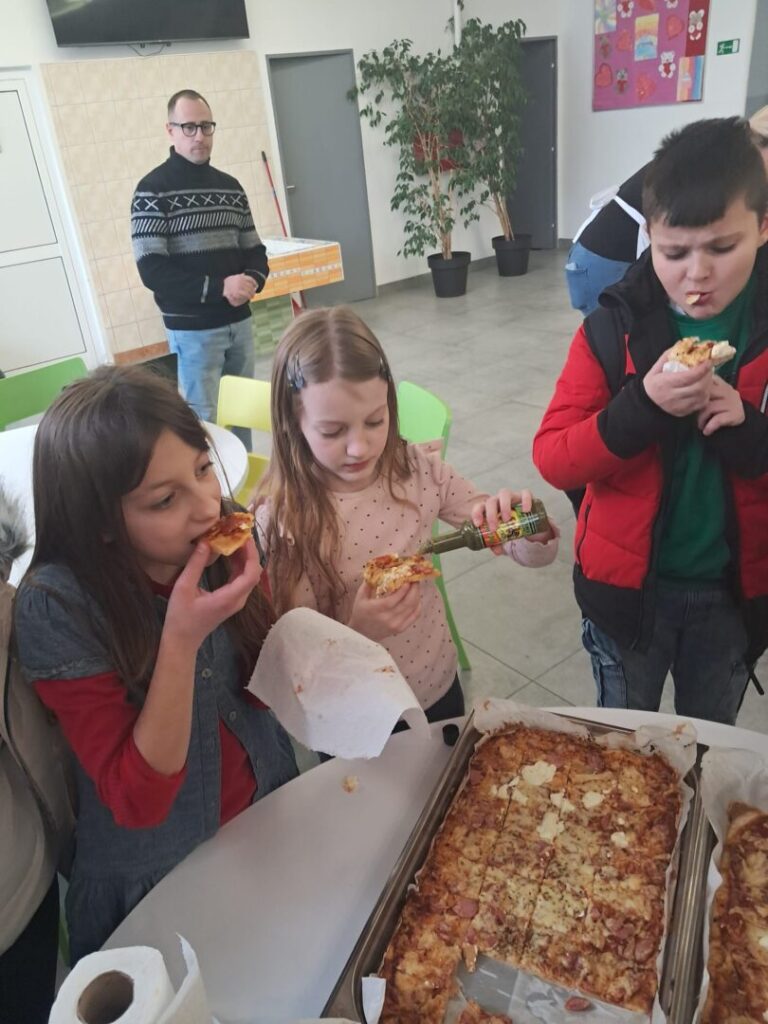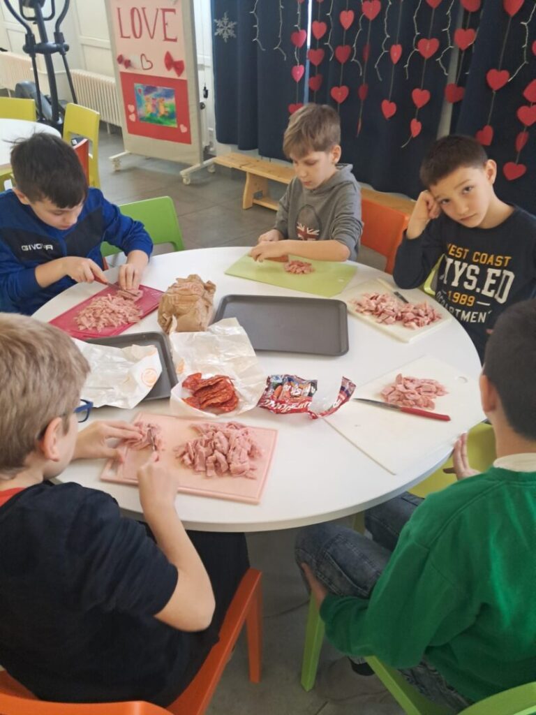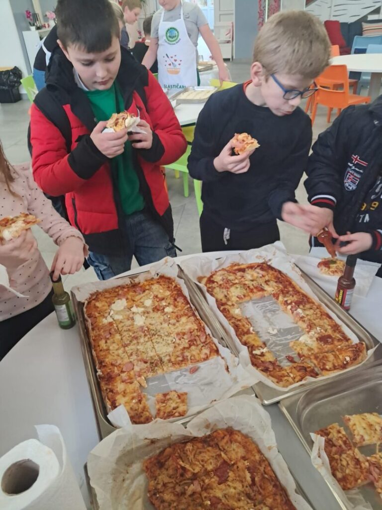 U utorak, 10. veljače 2026. godine, našom se školom širio miris svježe pečene pizze. Učenici 4. razreda su na satu Domaćinstva odlučili proslaviti Svjetski dan pizze. Mijesili su tijesto, ribali sir, rezali šunku, kulen, kobasice i slaninu. Slijedilo je kreativno kombiniranje namirnica i pečenje u školskoj kuhinji. Uživali su u svim etapama rada, ali ih je ipak najviše razveselila degustacija. Pridružili su im se i drugi učenici. Četvrtaši su, kao pravi domaćini, počastili i svoje učitelje i učiteljice u zbornici.